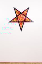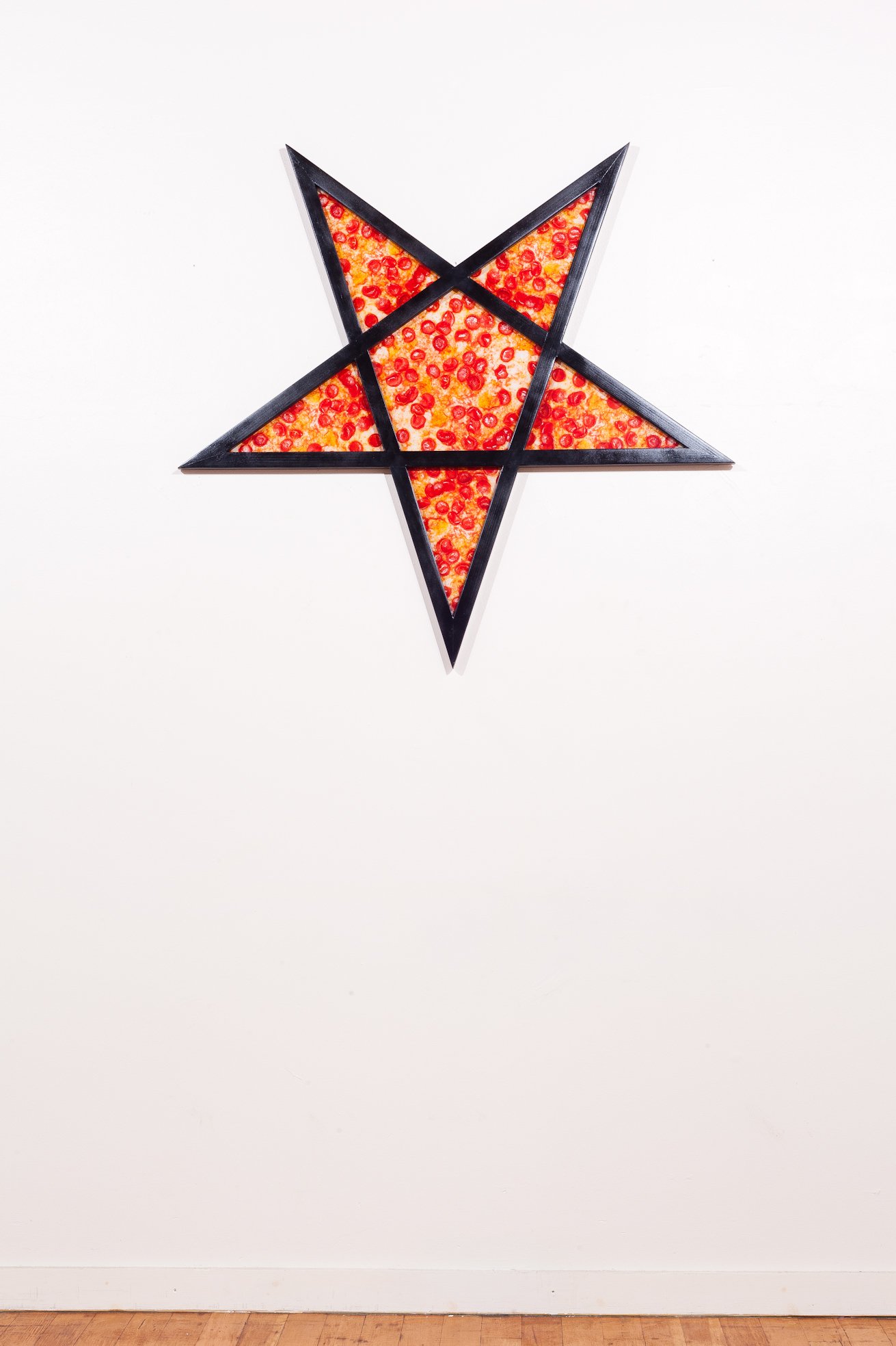 Hand Made Northern California Redwood frame with 6 individual plexiglass front mounted Photos. 47" inches point to point. stained black with a hint of gold acrylic. 1 of 1